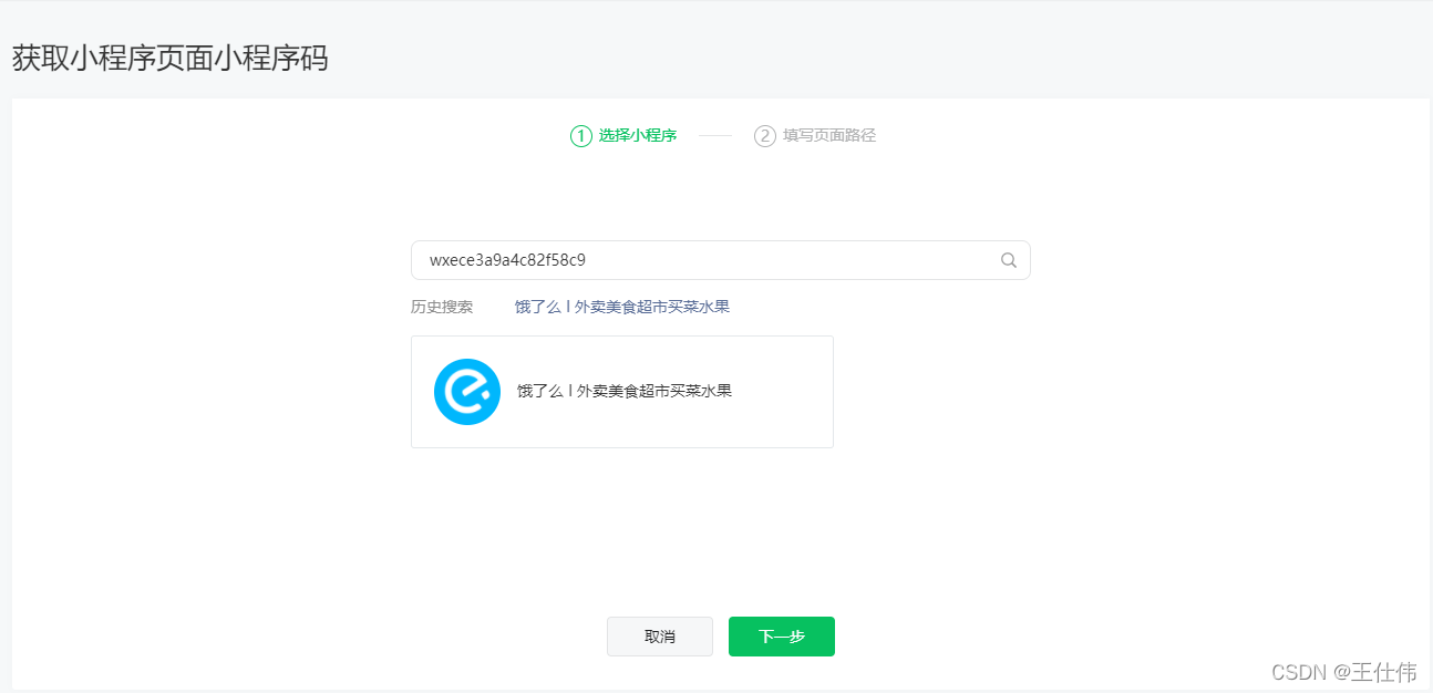 然后用你输入的微信号微信浏览“饿了么”小程序,浏览到你要获取path的页面,点击右上角的“