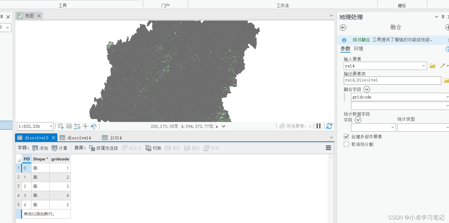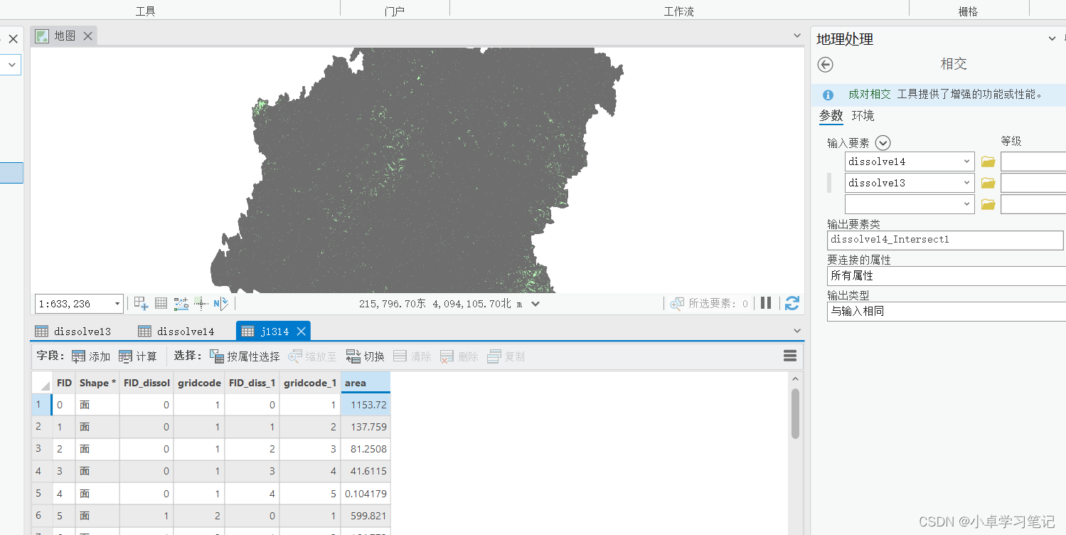 8.在相交后的图像里增加面积字段,利用计算机和求出。