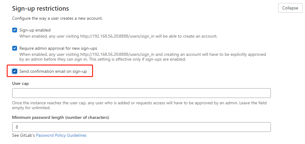 但是gitLab注册账号时,默认是没有对注册的账号进行任何验证的,所以注册时,我们需要开启邮箱验证