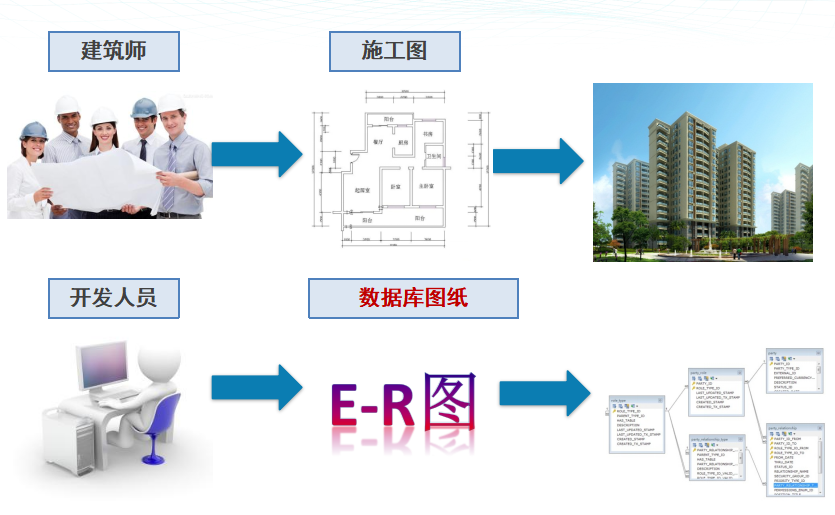 将E-R图中每一个实体转换成一个表,实体的属性转换为表的列,实体的标识符转换为表的主键