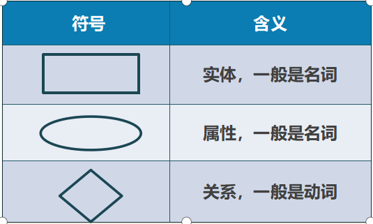 标识数据库要管理的关键对象或实体,实体一般是名词