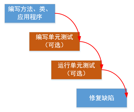 1、有人认为软件编码完成后编写单元测试(传统方法),流程如下: