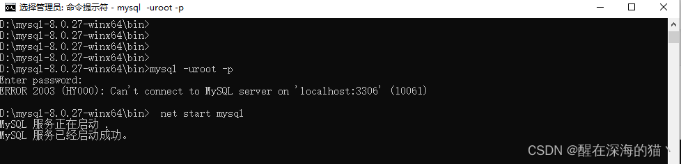 启动MySQL服务 net start mysql