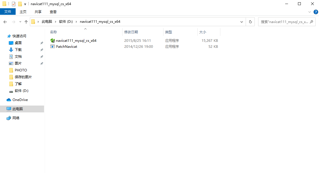 2.解压下载后的文件有两个文件,点navicat111_mysql_cs_x64.exe 进行安装