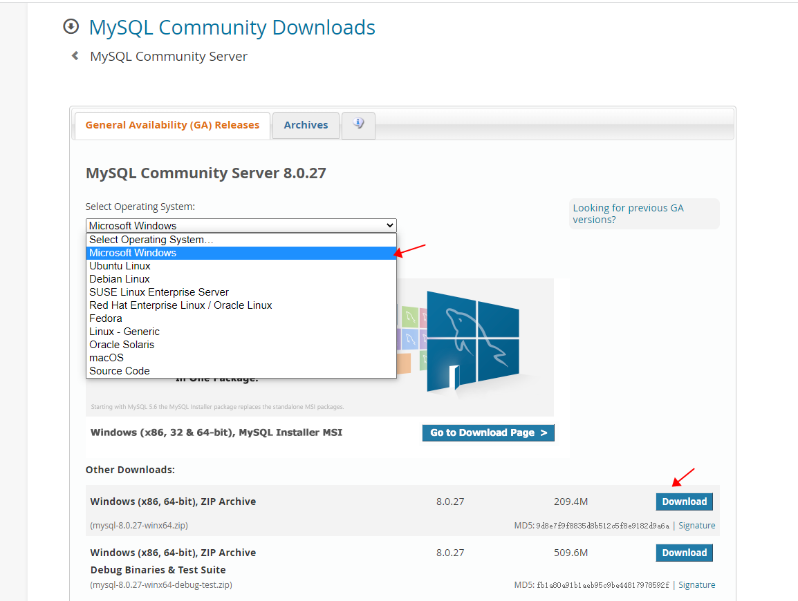 1.MySQL下载官网:https://dev.mysql.com/downloads/mysql/