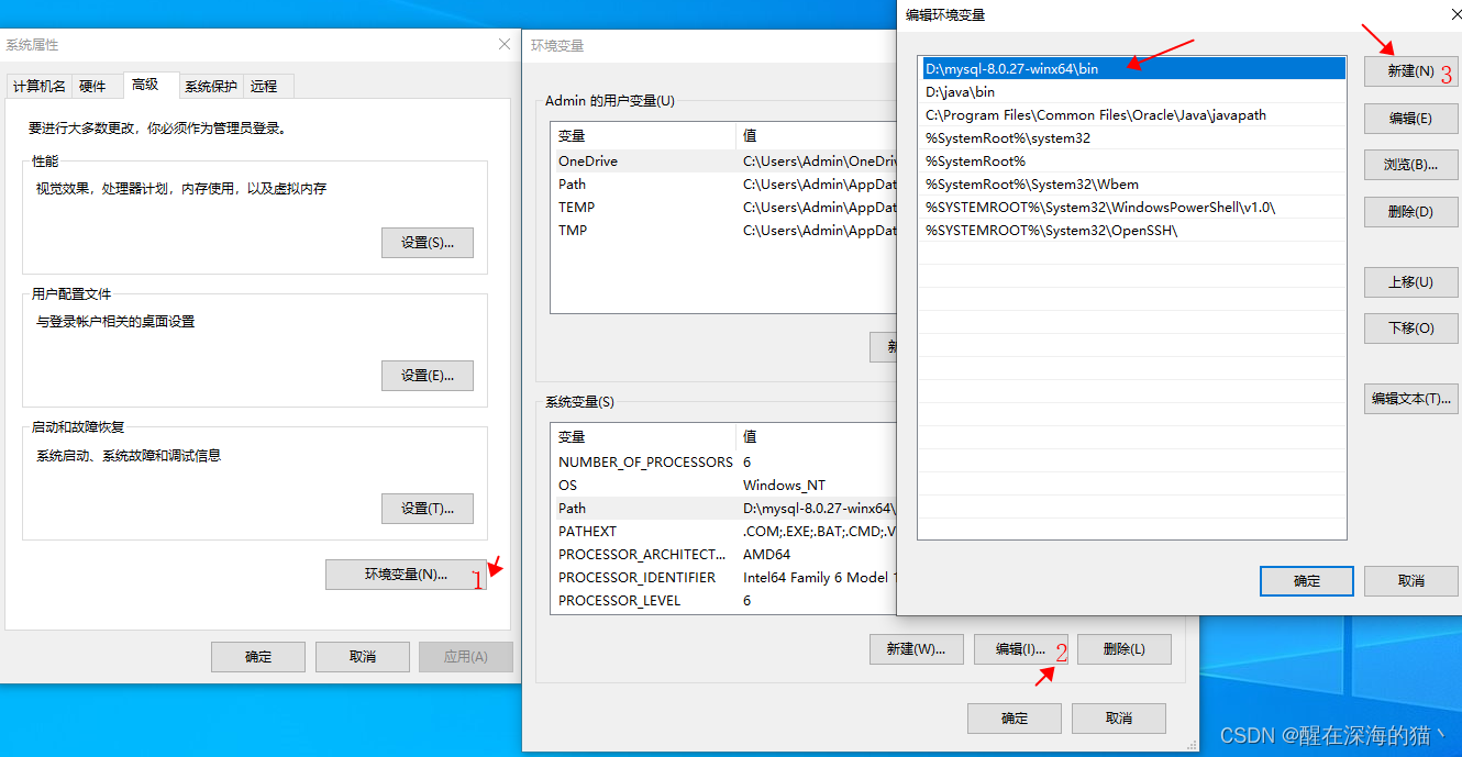 3.设置PATH环境变量为D:\mysql-8.0.27-winx64文件夹的bin文件夹