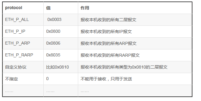 socket(PF_PACKET, SOCK_RAW, htons(protocol))