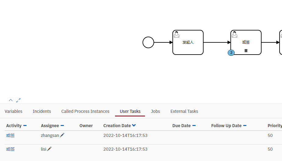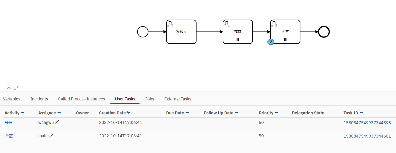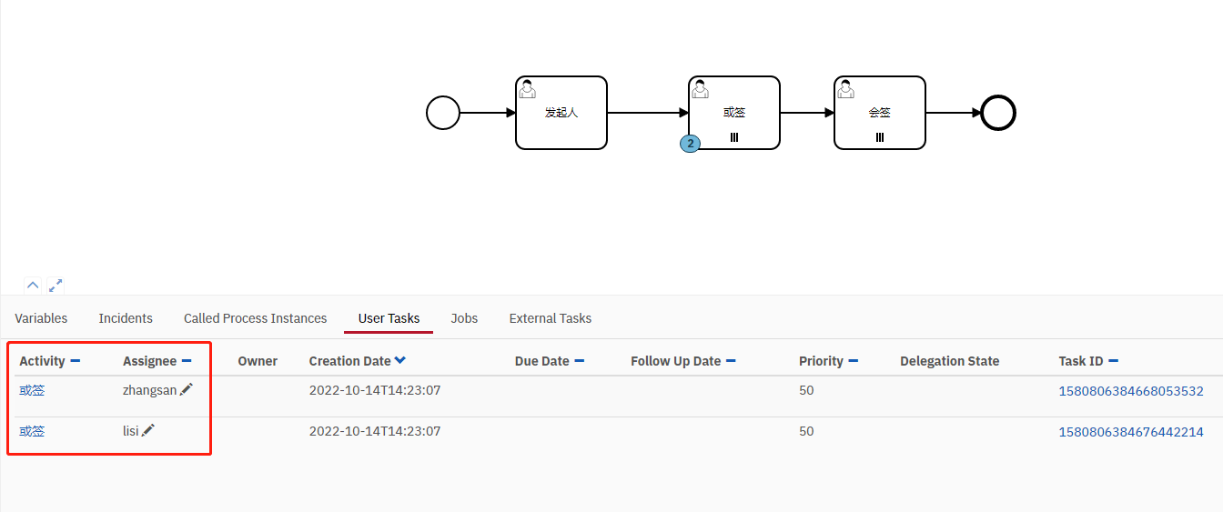 我们开始加签,这里流程跑到第二个节点时会创建和userOneList.size 的Task,想在这个节点加签,就得想办法让这个事件再触发一次。
