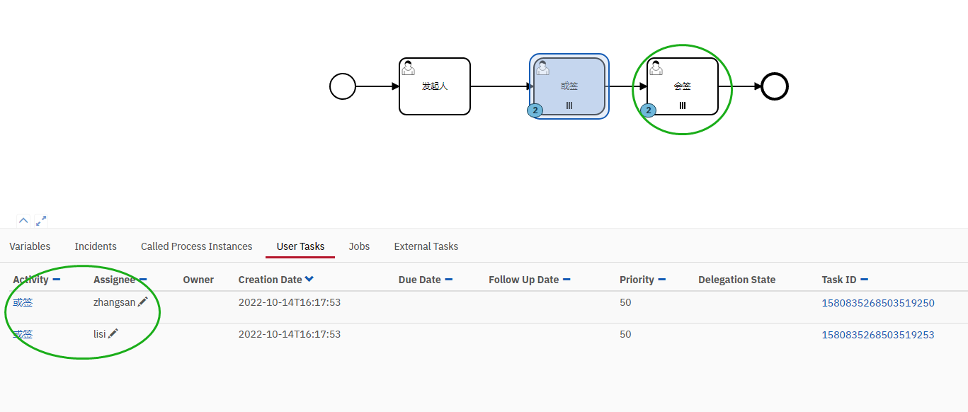 刚刚加签的那个人确实审批通过了,也到会签节点了,但是原先的两个人还停留在或签,看一下原因