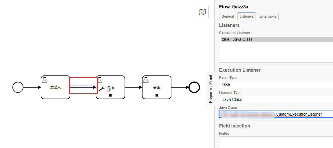 修改流程定义,在或签节点之前的连线上设置执行监听器。