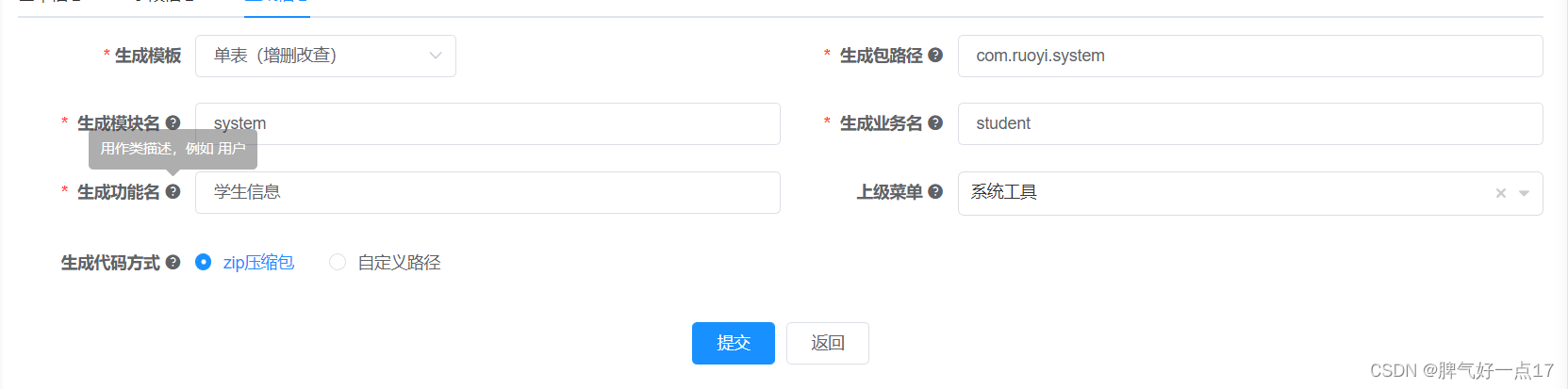 生成模板、生成包路径、生成模块名、生成业务名都不需要改动