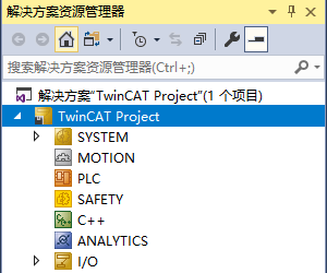 项目新建后会自动生成一堆子目录,其中常用的有MOTION、PLC、I/O这三个。