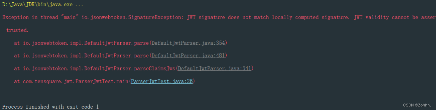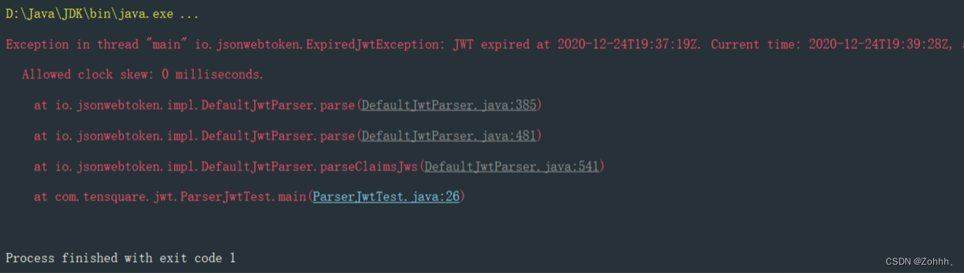 1 分钟之后,过期时会引发 io.jsonwebtoken.ExpiredJwtException 异常: