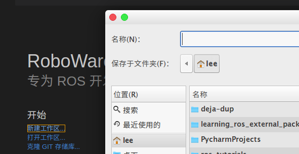 新建工作区,选择用户目录下 ,名称 :catkin_ws