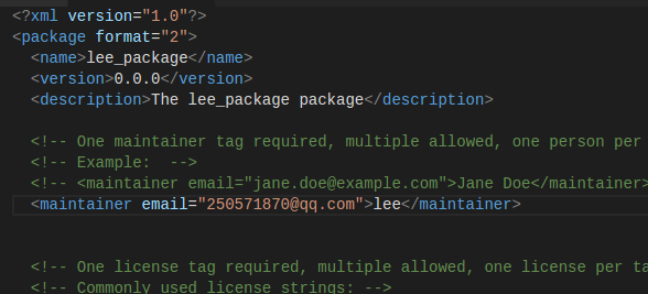 更改 package.xml 信息(随便按键盘字母就能输入了):