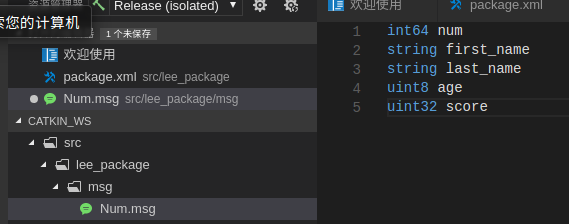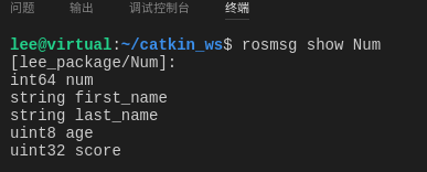 ~/catkin_ws/devel/lib/python2.7/distpackages/lee_package/msg 目录下创建。