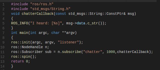 ros::Subscriber sub = n.subscribe("chatter", 1000,chatterCallback);
