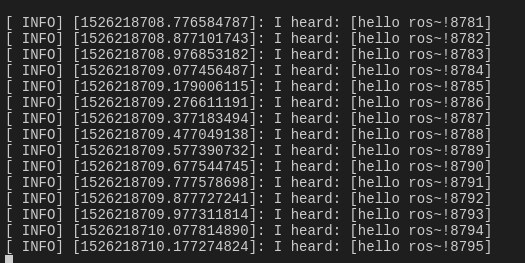 上面我们编写了一个名为"listener"的订阅器节点。现在新终端中运行它:
