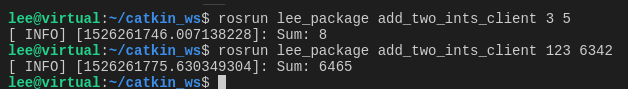 $ rosrun lee_package add_two_ints_client 3 5
