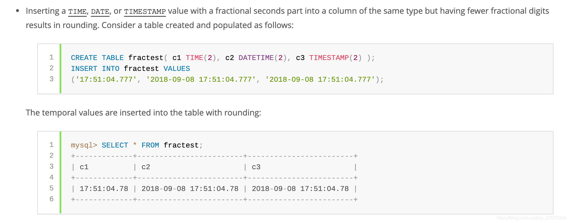 官方文档:https://dev.mysql.com/doc/refman/5.7/en/fractional-seconds.html