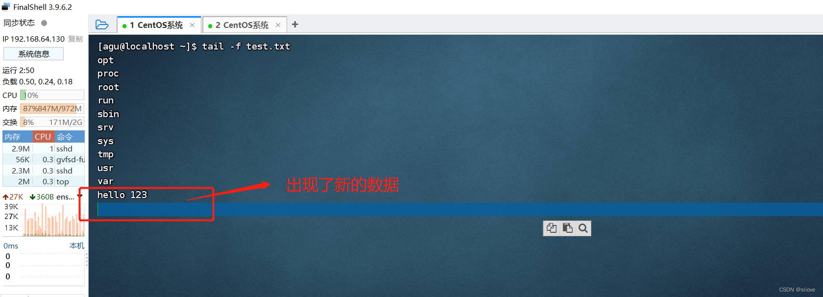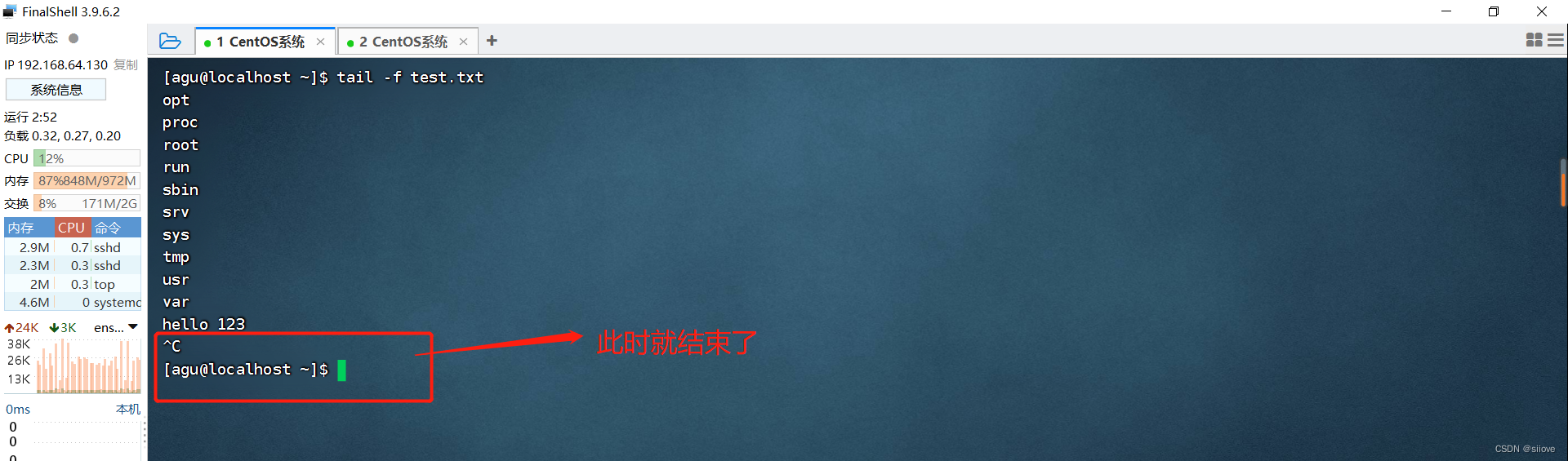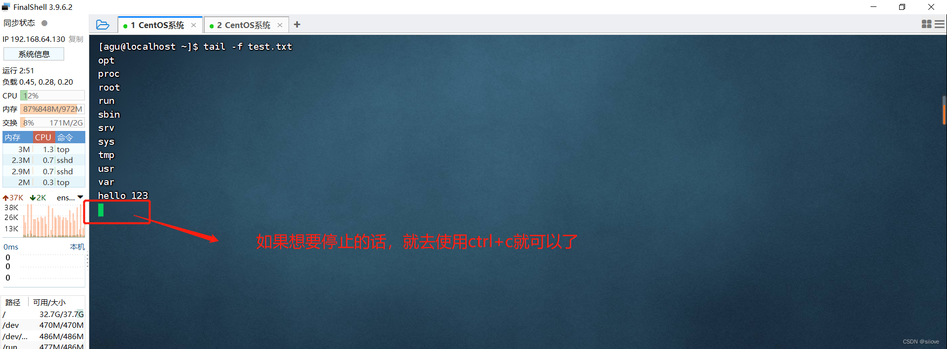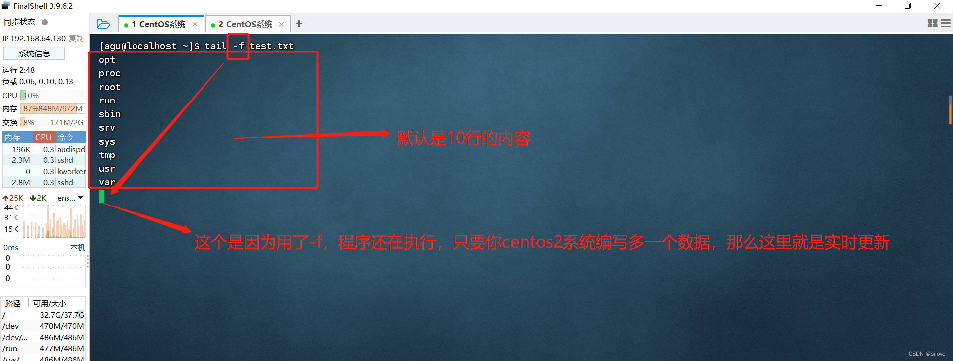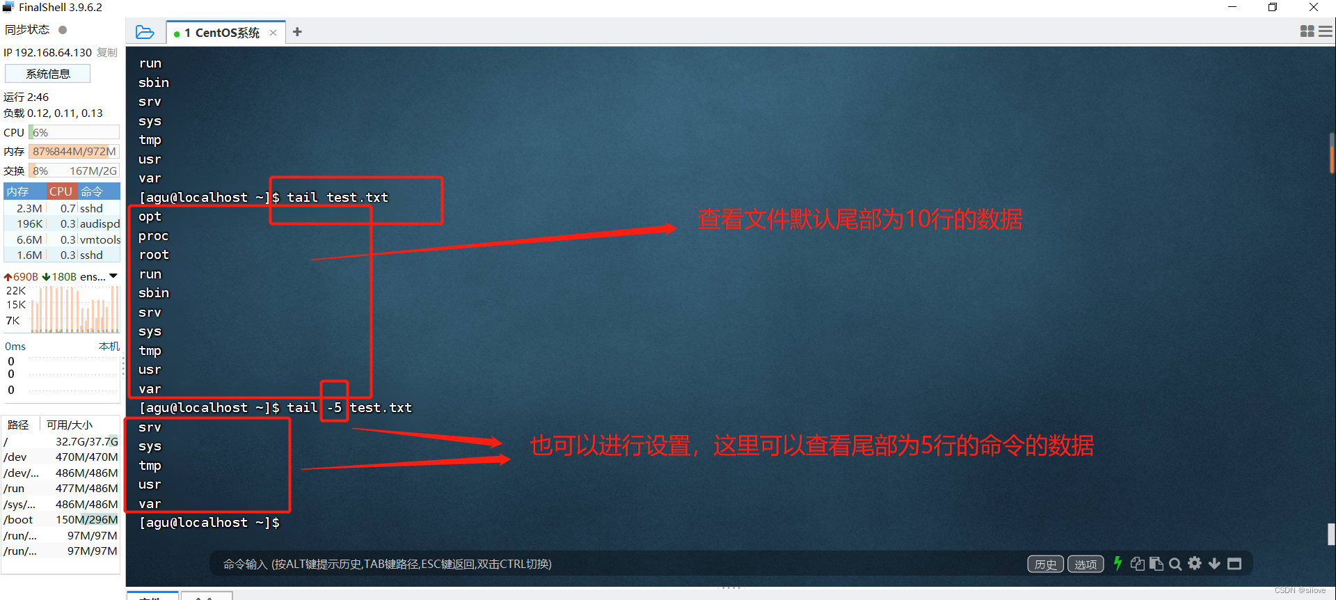 功能:查看文件尾部内容