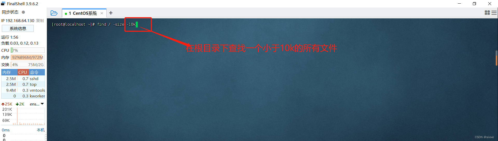 查找小于10KB的文件: find / -size -10k