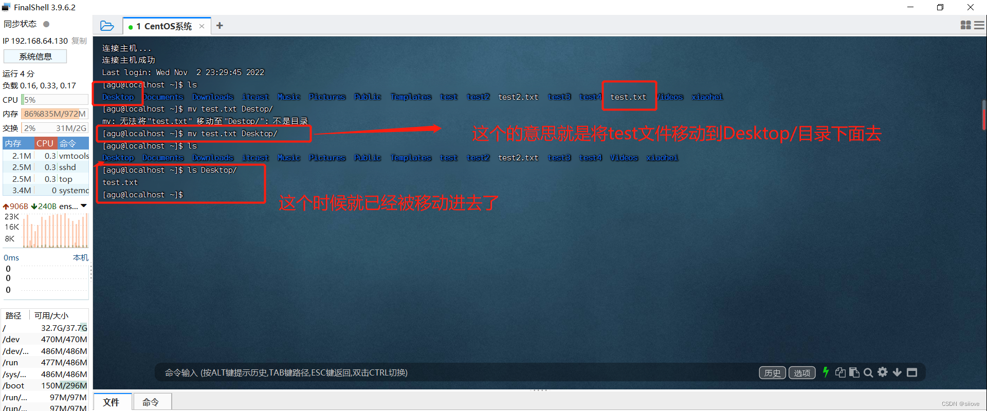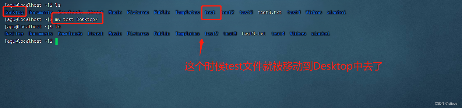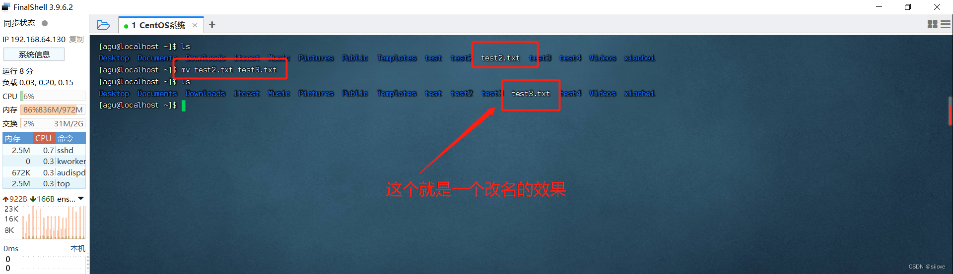 参数2:要移动去的地方,参数2如果不存在,则会进行改名(比如这里test2就被改名为test3)