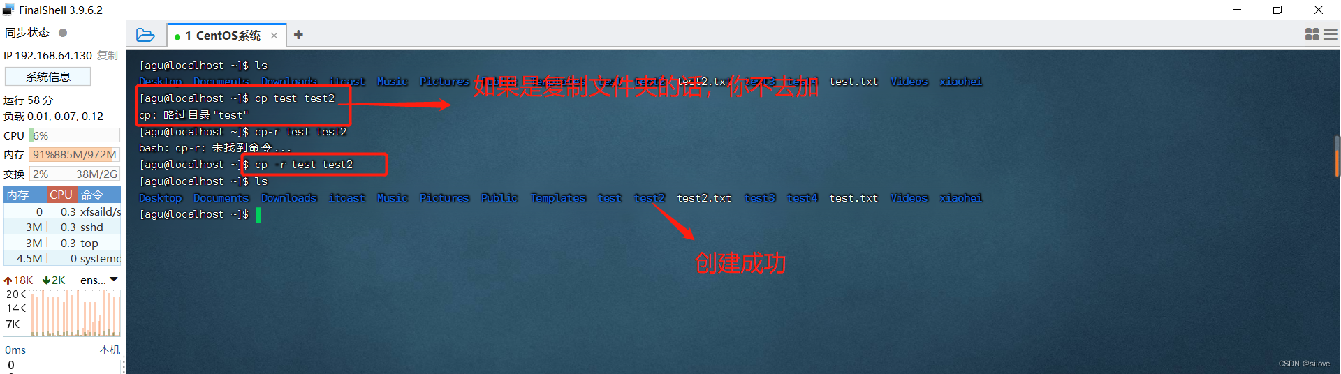 下面这个是文件夹的复制(记得要加-r):
