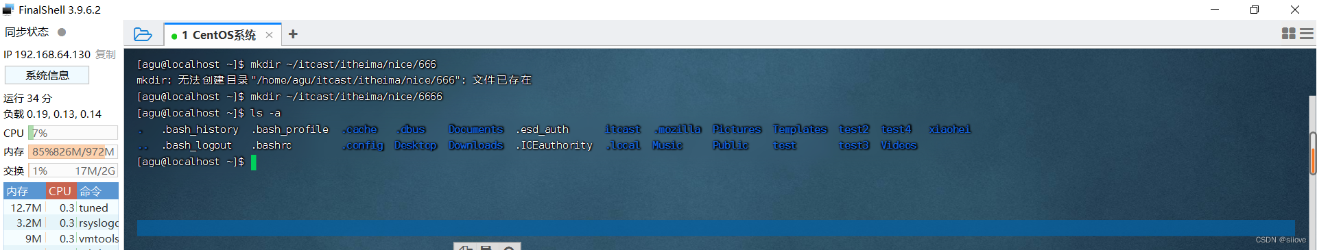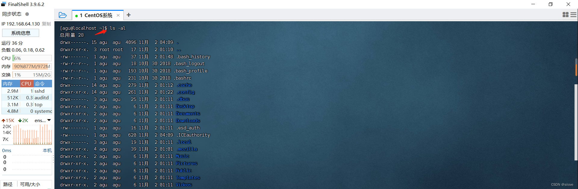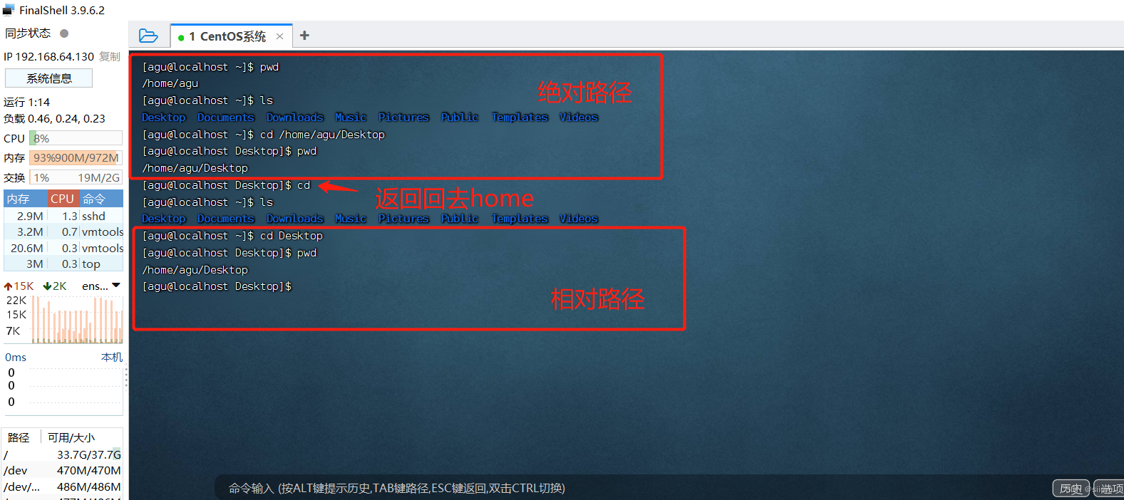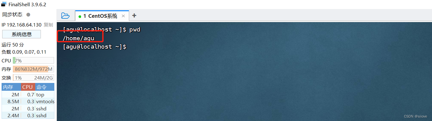 FinalShell登陆终端后,默认的工作目录就是用户的HOME目录