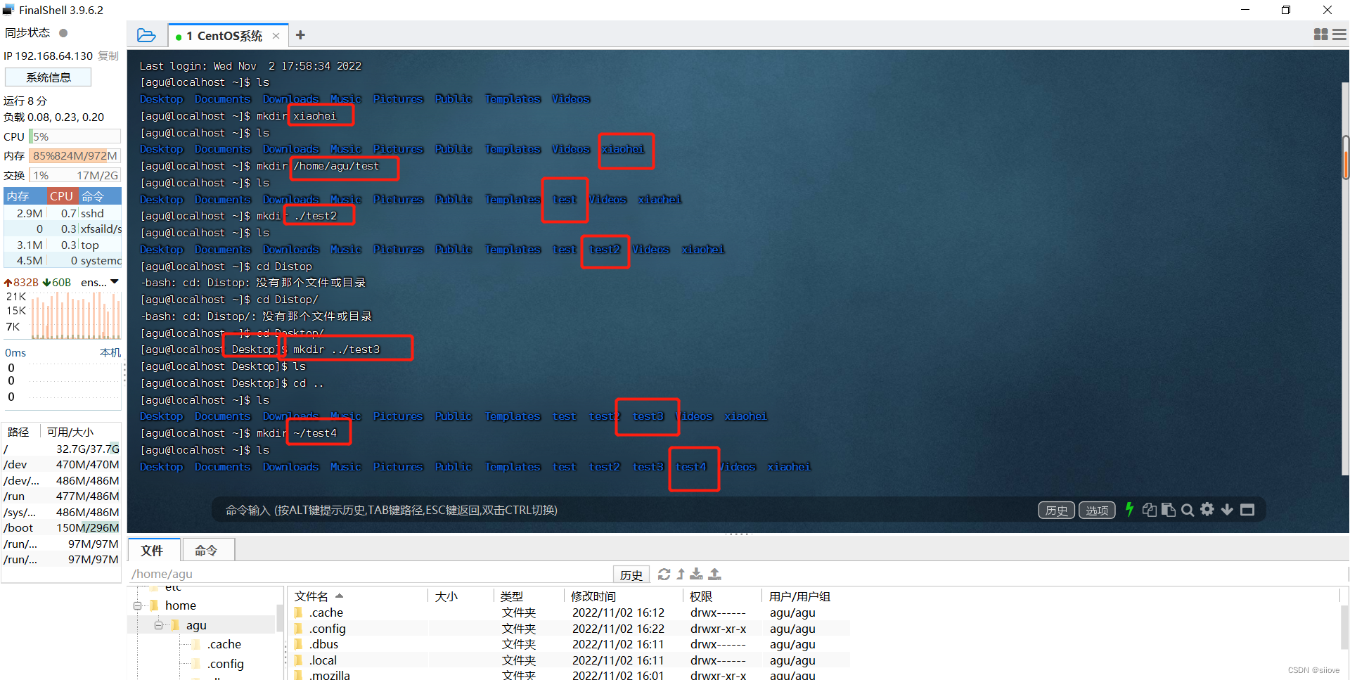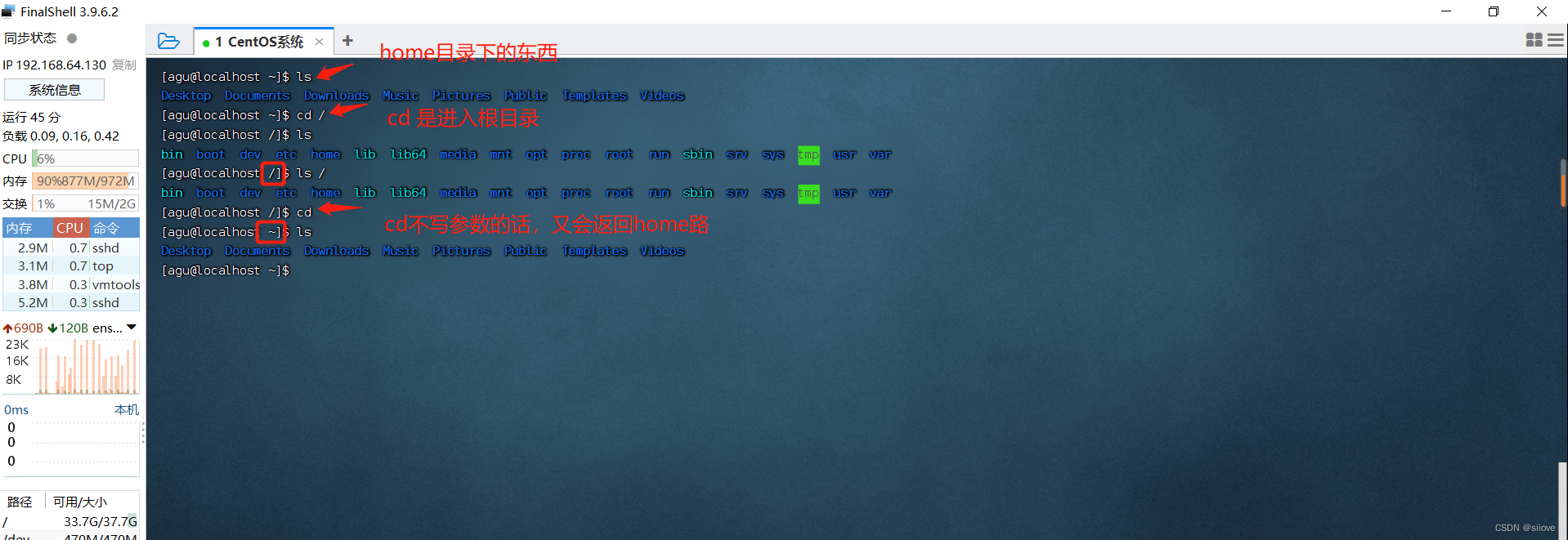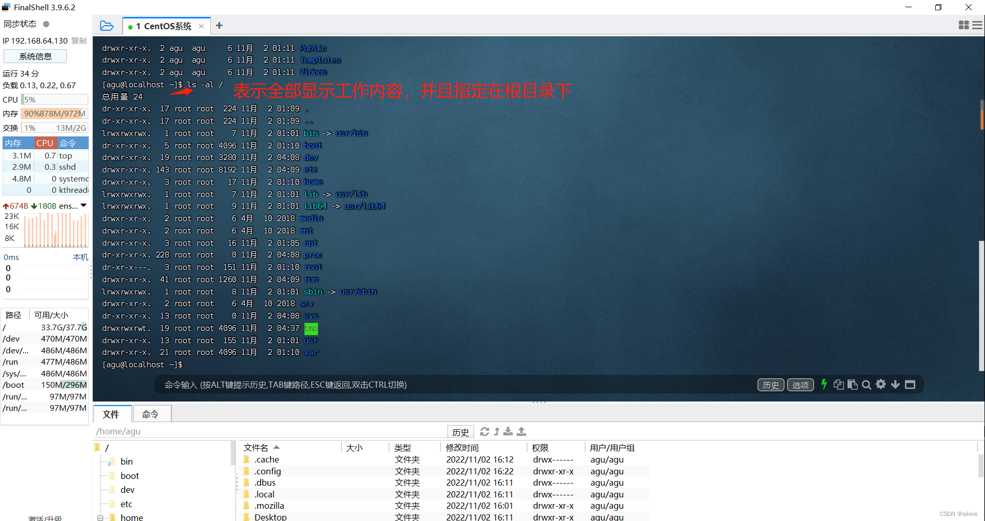 FinalShell登陆终端后,默认的工作目录就是用户的HOME目录