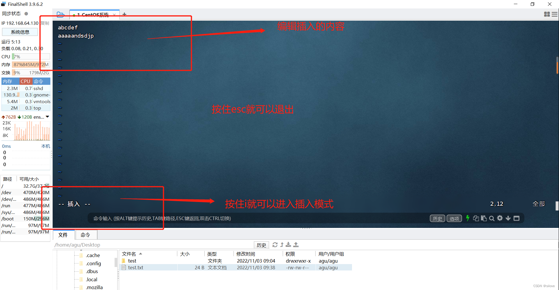 也就是所谓的编辑模式、插入模式