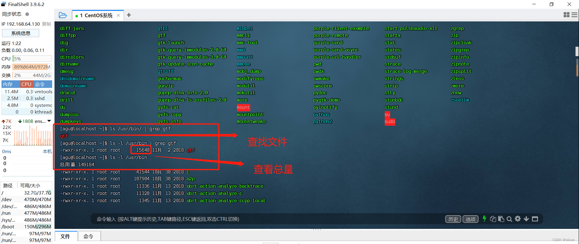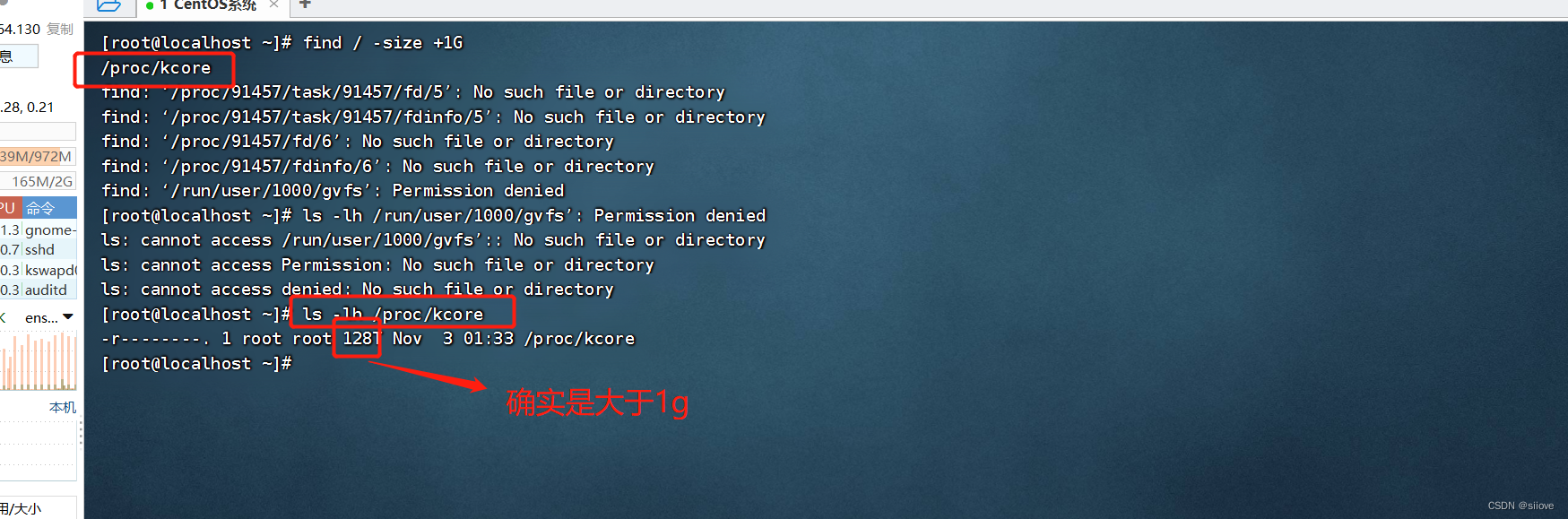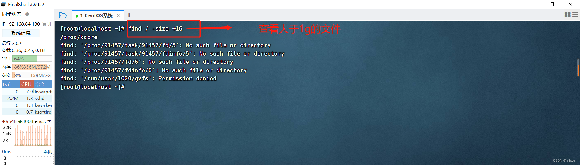 查找大于1GB的文件:find / -size +1G