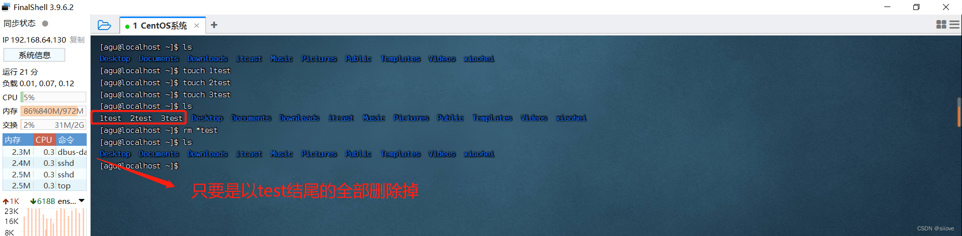 rm命令支持通配符 *,用来做模糊匹配