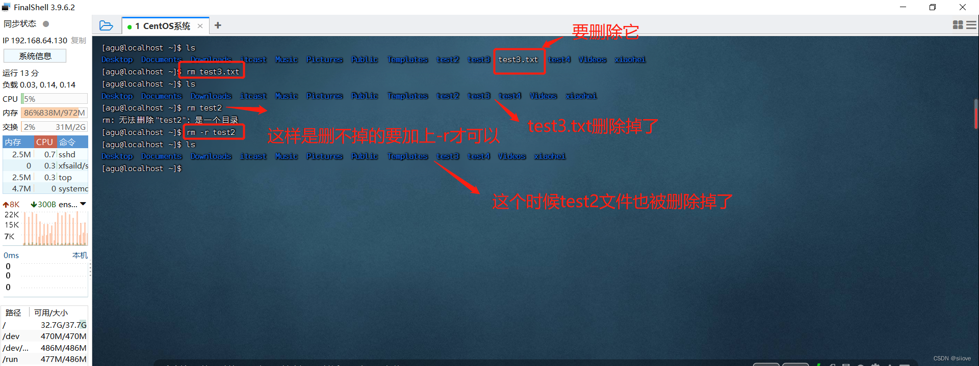 rm是一个危险的命令,特别是在处于root(超级管理员)用户的时候(请谨慎使用)