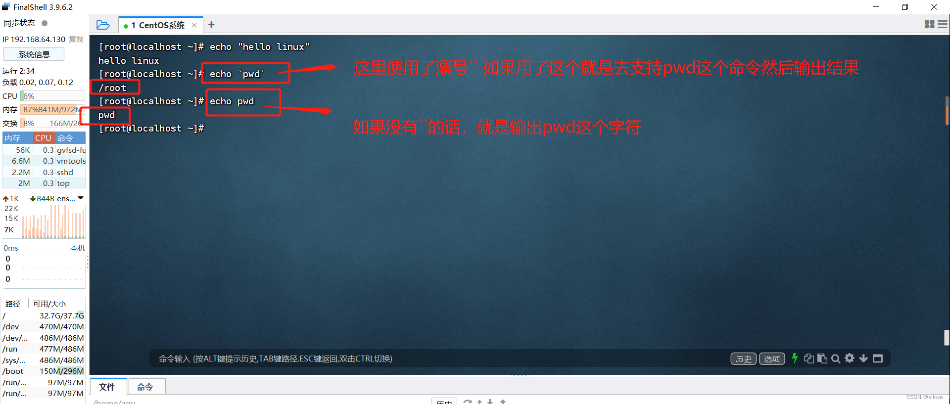 echo `pwd`,会输出当前工作目录