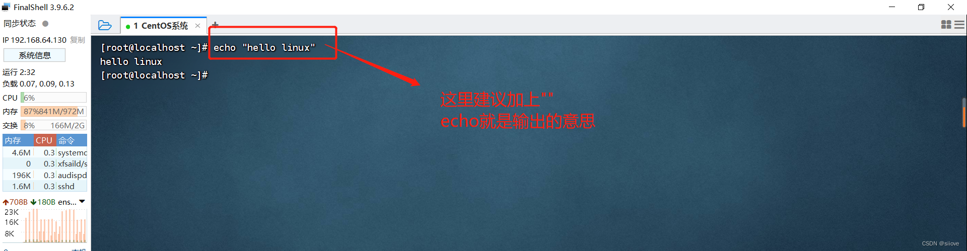 语法:`echo 参数`
