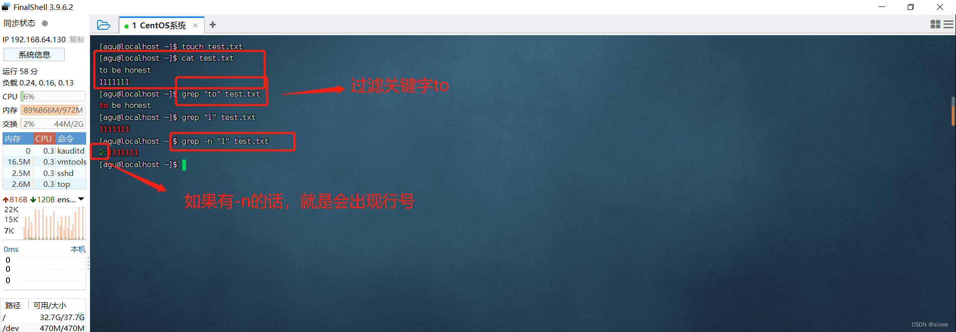 语法:grep [-n] 关键字 文件路径