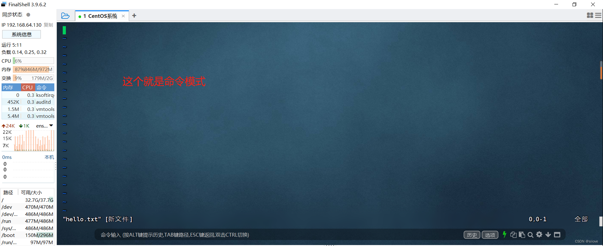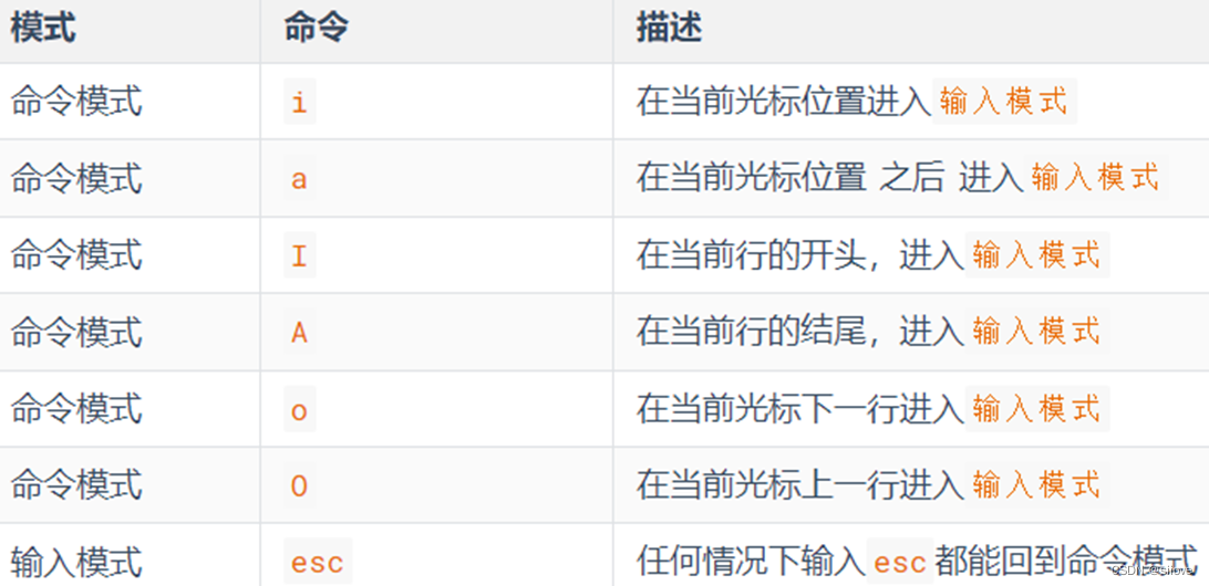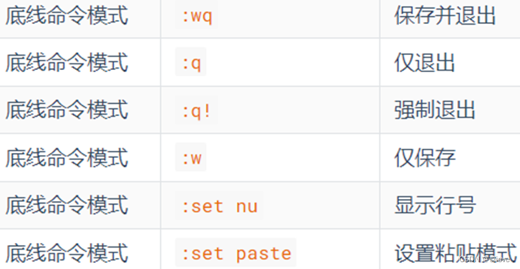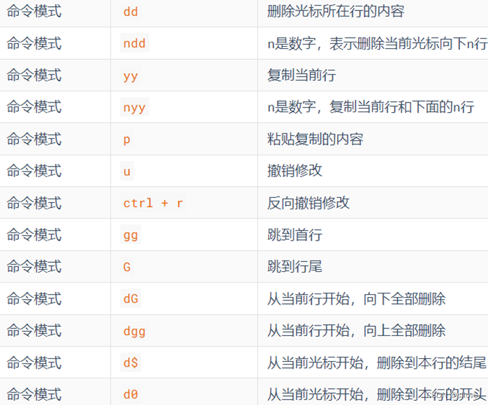 命令模式下,所敲的按键编辑器都理解为命令,以命令驱动执行不同的功能