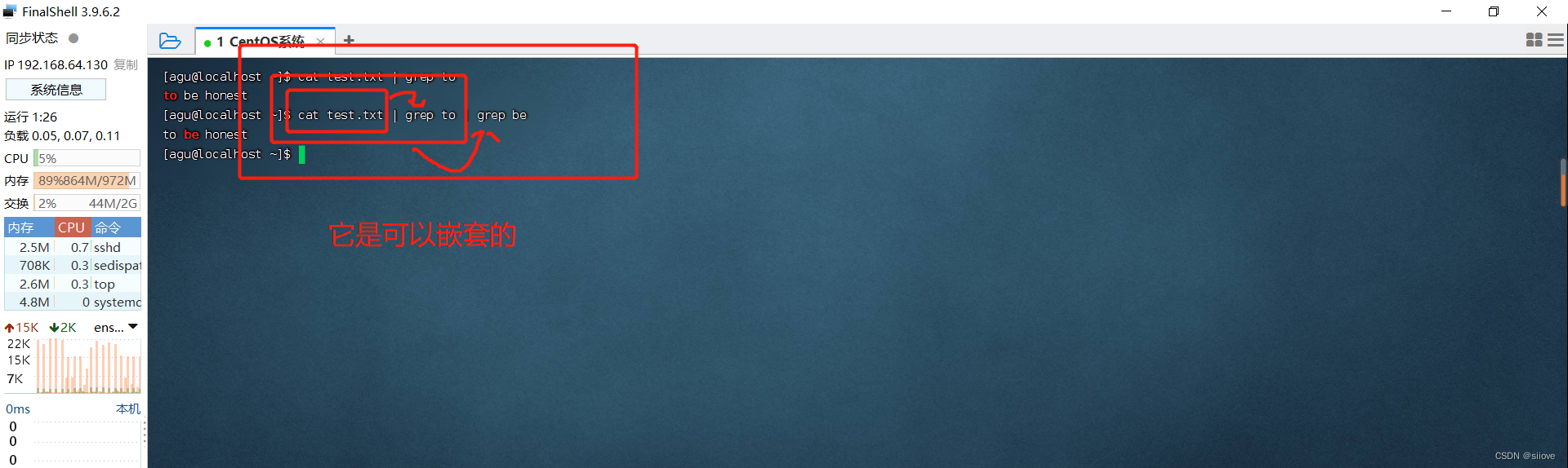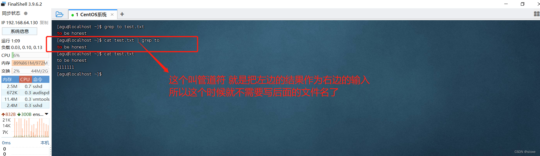- `cat test.txt | grep to | grep to