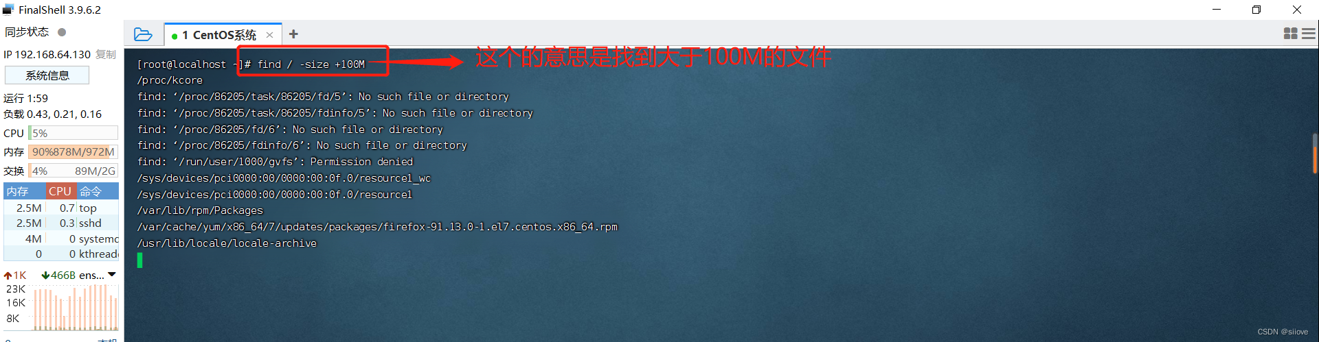 查找大于100MB的文件:find / -size +100M