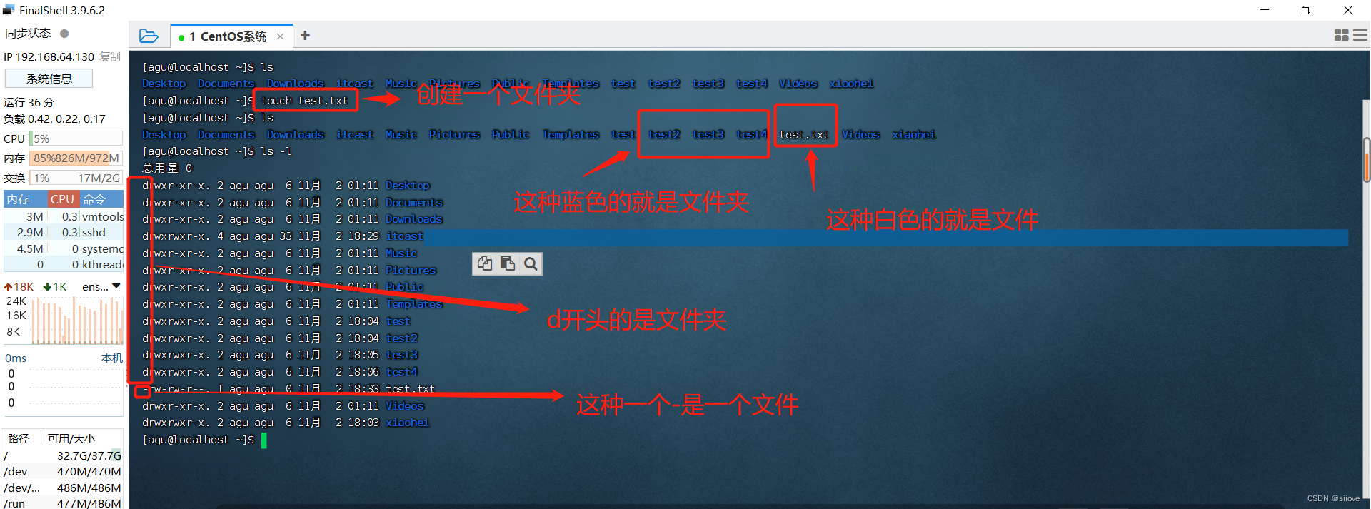 ls(其实就是去双击home里面显示的东西)