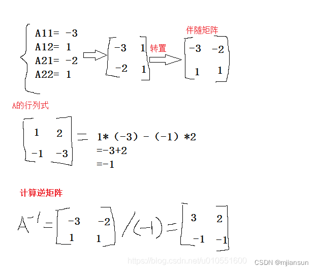从而逆矩阵A⁻¹=A*/|A| = A*/(-1)= -A*=