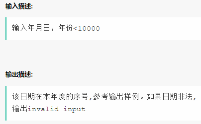 {int day[13] = { 0, 31, 28, 31, 30, 31, 30, 31, 31, 30, 31, 30, 31 };int y, m, d, s;char c;cin >> y >> c >> m >> c >> d;if (r(y))day[2]++;if (y <= 0 || y >= 10000 || m <= 0 || m > 12 || d <= 0 || d > day[m])cout << "invalid input";else{s = d;for (int i = 1; i < m; i++)s += day[i];printf("%d-%d-%d is the No.%d day of %d",y,m,d,s,y);}return 0;