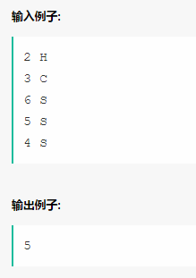 {char c;for (int i = 0; i < 5; i++){cin >> num[i];if (num[i] == '1')cin >> c;cin >> color[i];}cout << f();return 0;
