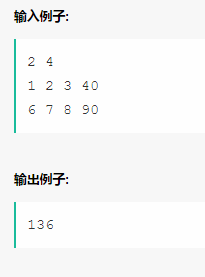 {cin >> m >> n;for (int i = 0; i < m; i++)for (int j = 0; j < n; j++){cin >> num[i][j];ans[i][j] = -1;}cout << f(m - 1, n - 1);return 0;
