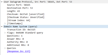 (2)针对(1)中的DNS访问过程,观察UDP协议的报文格式。