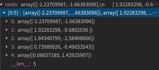 第三步、利用莱维飞行更新点,莱维飞行公式中的 β \beta β我们取为1.5,剩下的把公式敲上去获得步长,但是,这样生成的步长的规格是大于问题的规模的,后面我们需要调参,但这里为了简便我就把我后来调出来的结果摆出来,莱维飞行的步长需要乘以系数0.4才能让莱维飞行不至于走的太放飞自我,也不至于走的太畏畏缩缩(多数情况下,系数取为0.1和0.01)。这里我们还用到了一个小技巧,我们当然是希望上一轮产生的最好点能在下一轮保留下来,所以我们可以在步长前乘以个系数 ( x i 上 一 轮 − x b e s t 上 一 轮 ) (x_{i}^{上一轮}-x_{best}^{上一轮}) (xi上一轮−xbest上一轮),这里的 i i i就是步长对应的点下标。当然,有了步长还不够,还得有个步长方向,这个方向我们就用0-1均匀概率分布产生,步长方向(矢量)点乘步长(矢量)就是步长增量。这是莱特飞行更新后的结果: