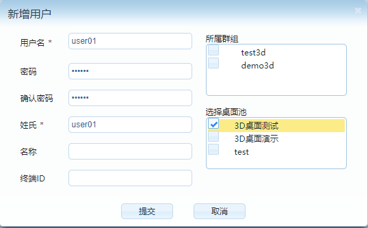 然后,在DoraOS云终端内,新建Deskpool,地址输入 DoraCloud地址。 账号填写创建的用户账号,即可连接桌面。