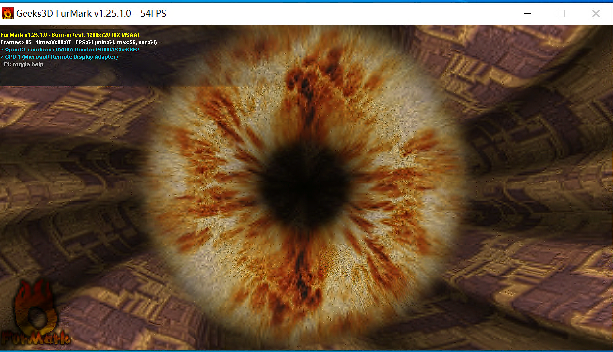 先用 FurMark测试一下,可以达到 54FPS的速度。