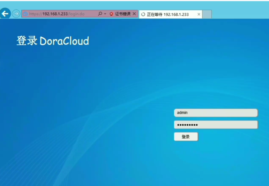 首先登录 DoraCloud管理系统,账号为 用户名 admin 密码 DoraCloud